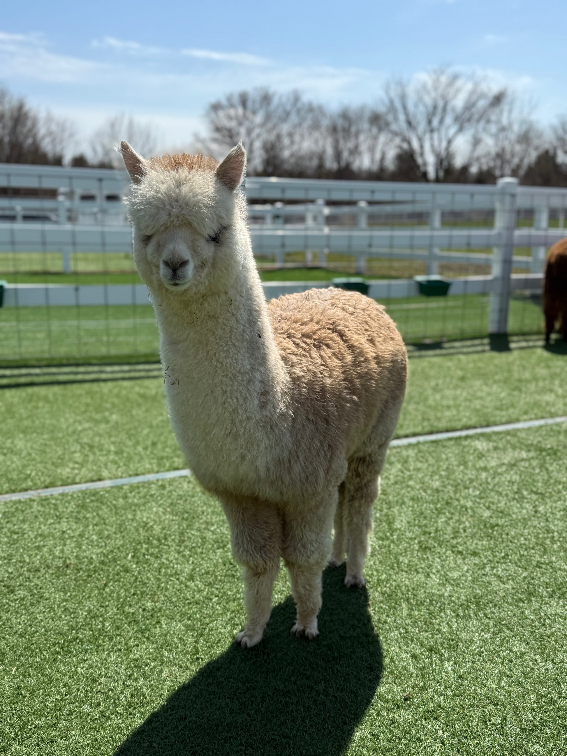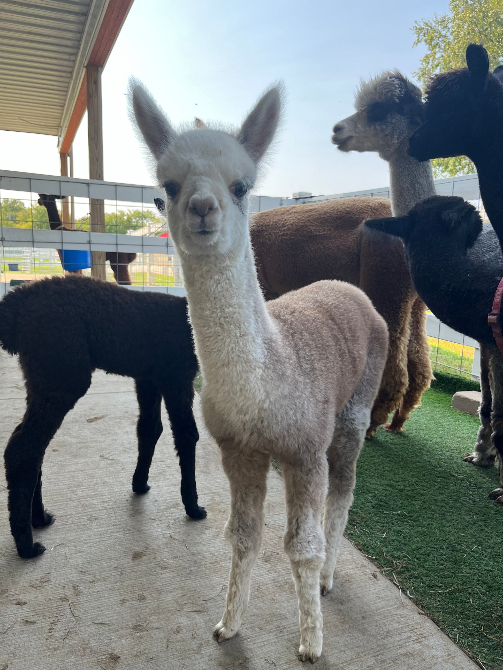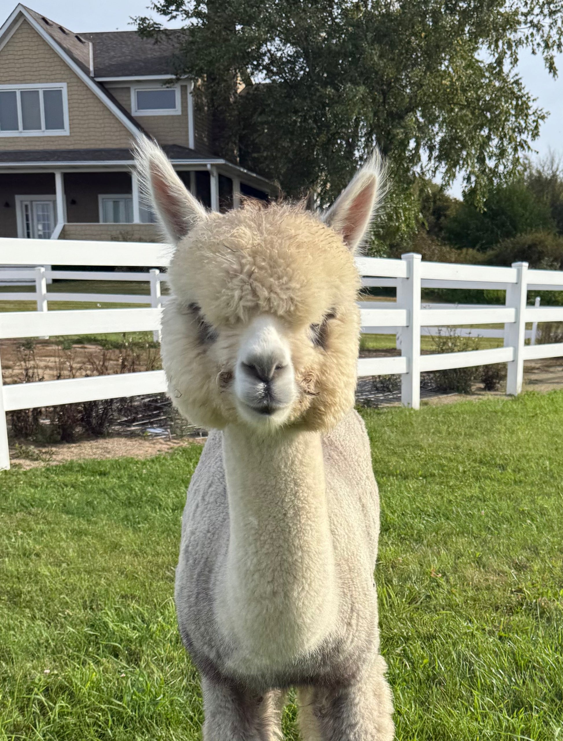 EEF Aggie had a difficult time at birth. She hung her head and then would all of a sudden flop over. We did a maneuver on her and after a few days she recovered. Since then, she is unstoppable. She loves to run and frolic. Her fleece is fine. She is a beautiful girl.