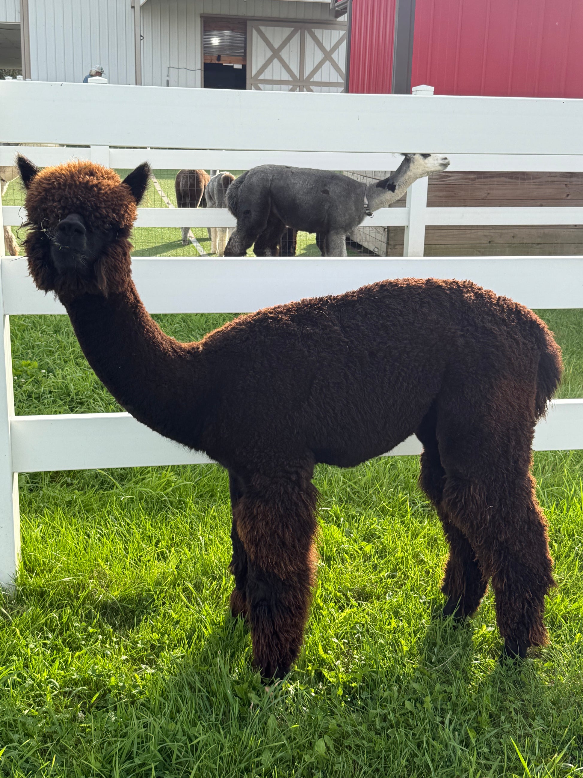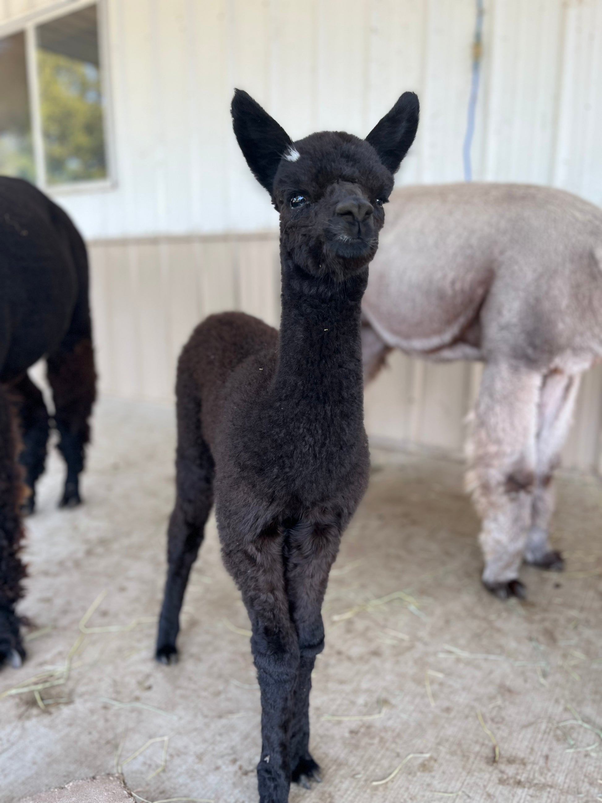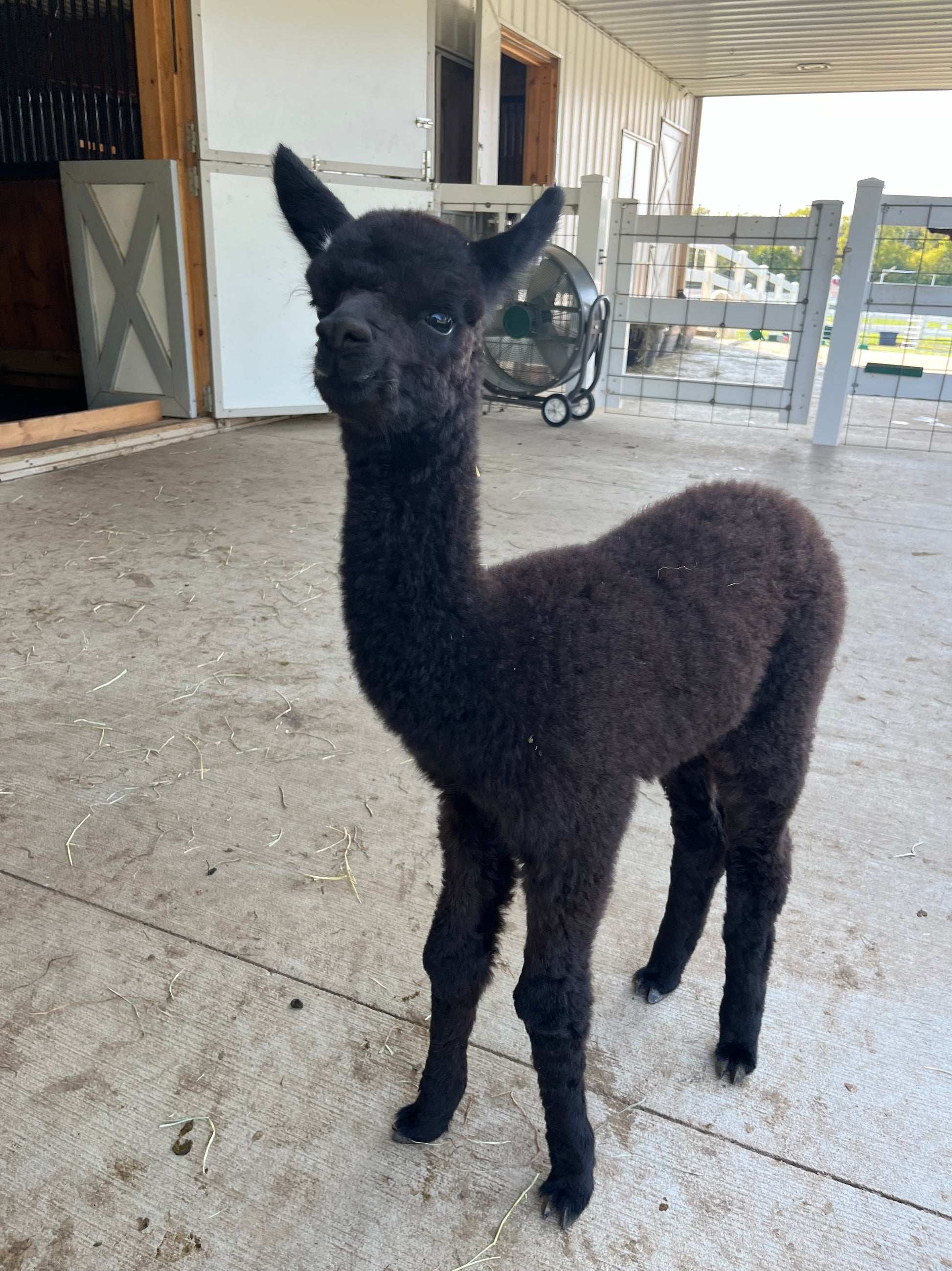 Her due date was 8/21/2024. Even though she was born after her due date, she was still dysmature. Her ears were curled. Her teeth were not erupted. Her legs were windswept. With a bit of assistance, she is now perfect. She has a tiny tuft of white hair just in front of her right ear and around her lip, but no white in her blanket. This is extremely similar to her sire, who went on to win 47 championships.