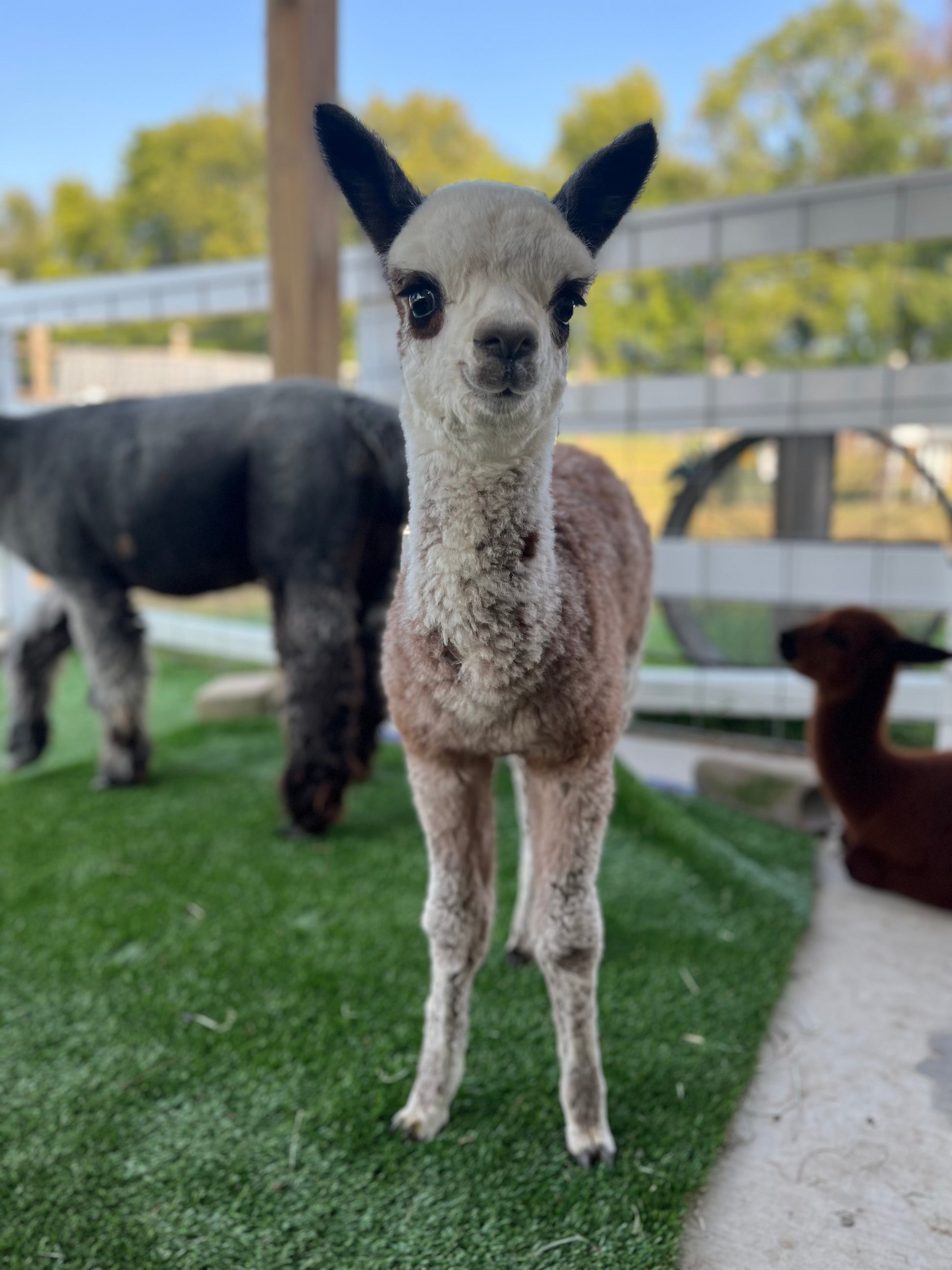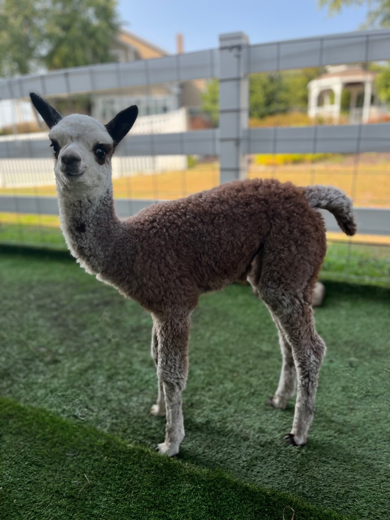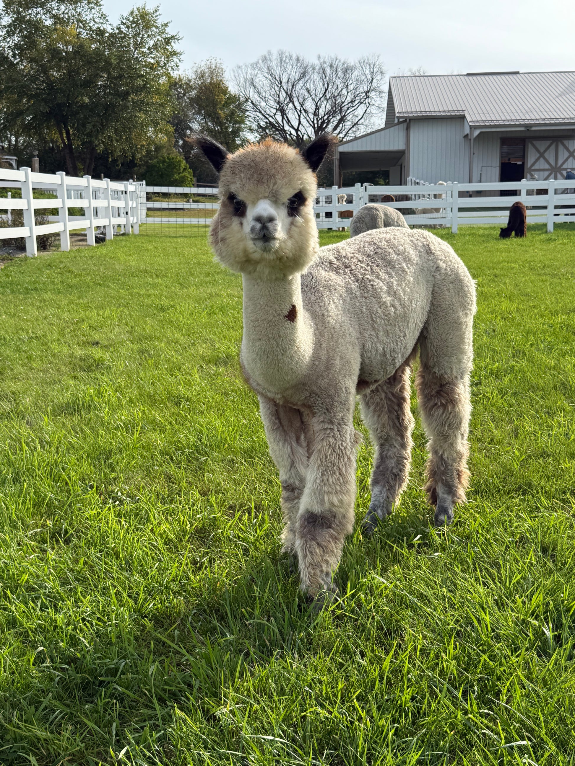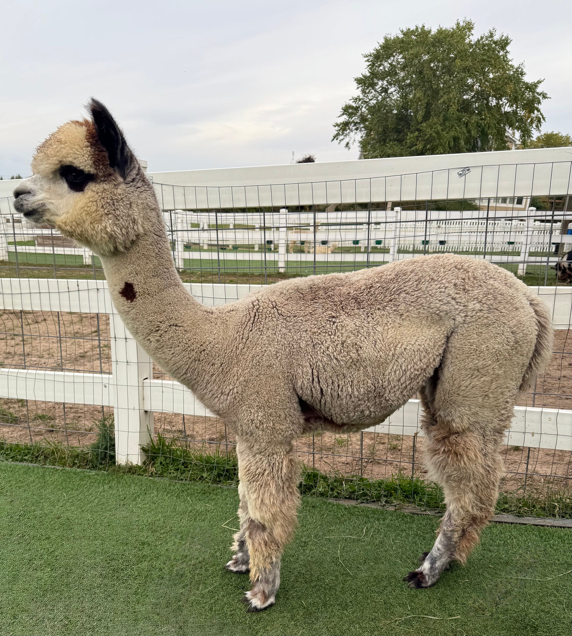 EEF Posie did not want to nurse when she was born. However, after working with her a bit, she was able to figure it out. Posie has a bite malocclusion, so is not a halter show animal. However, she does have very lovely fleece. She will make a fabulous fleece animal. She has a wonderful personality and enjoys being around and interacting with humans.