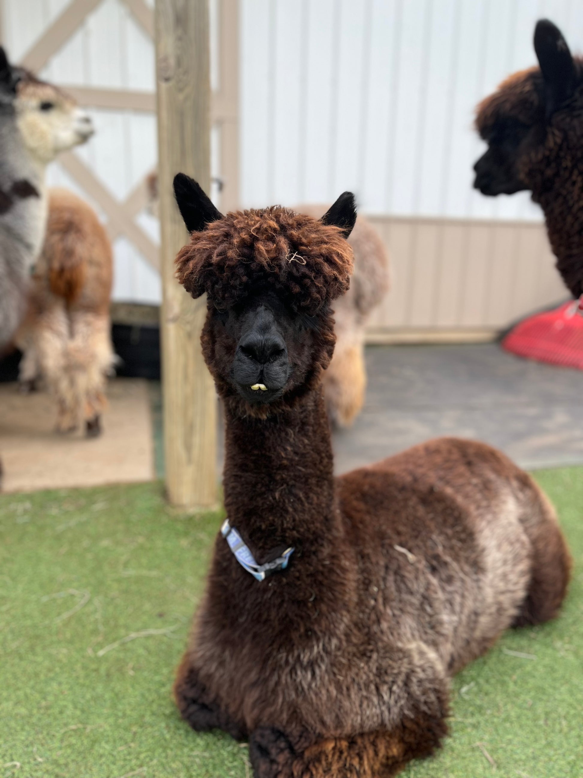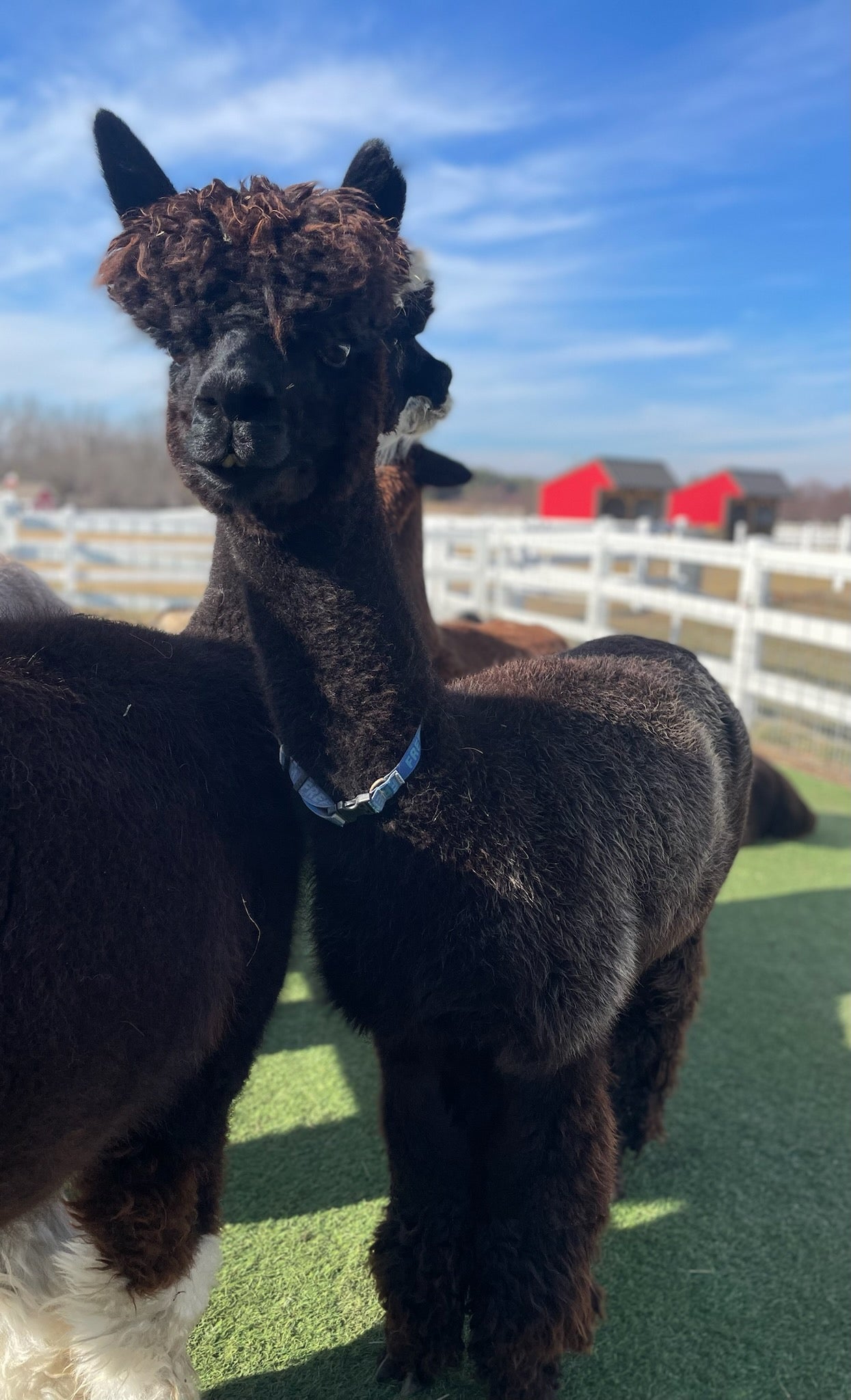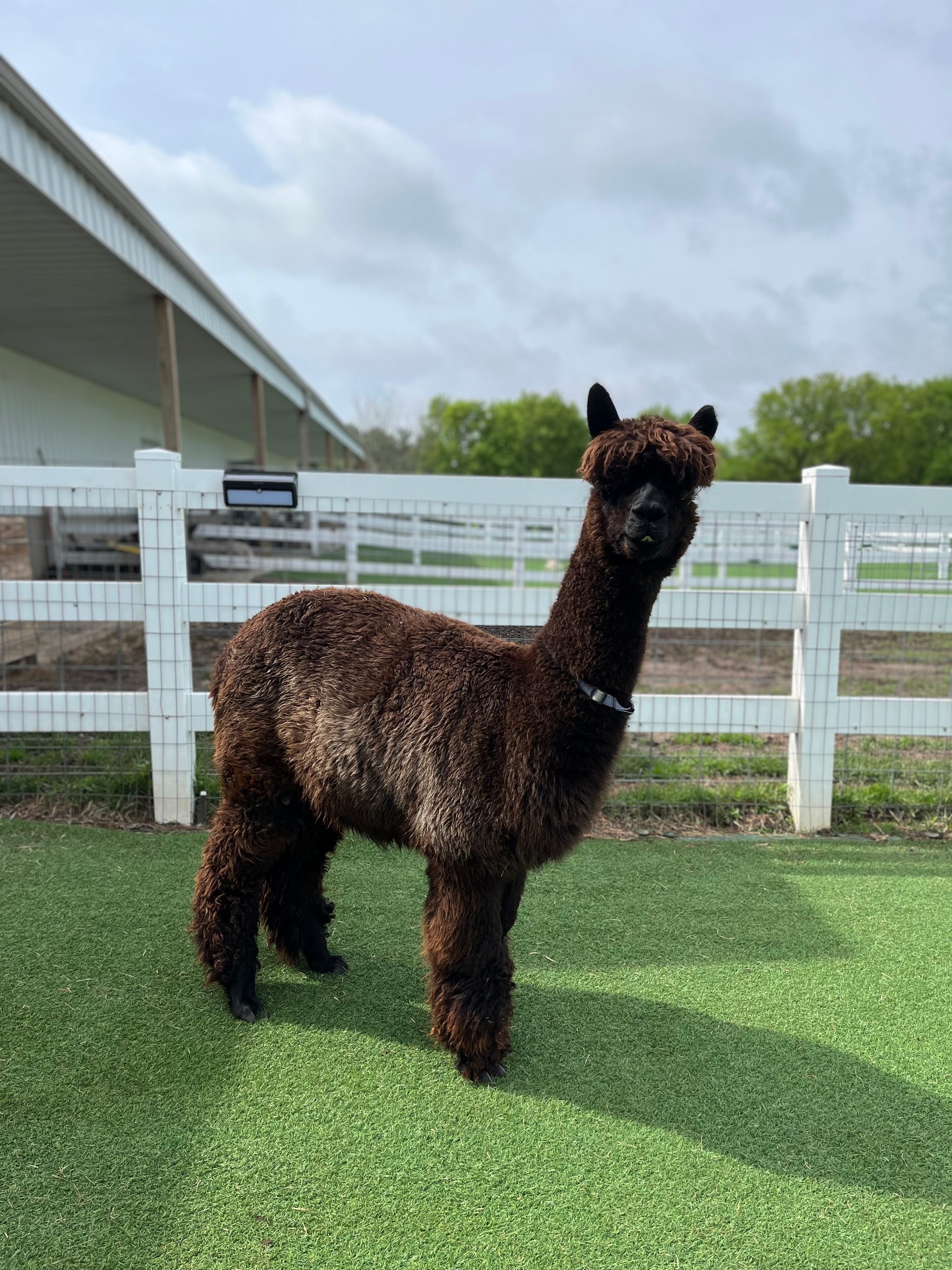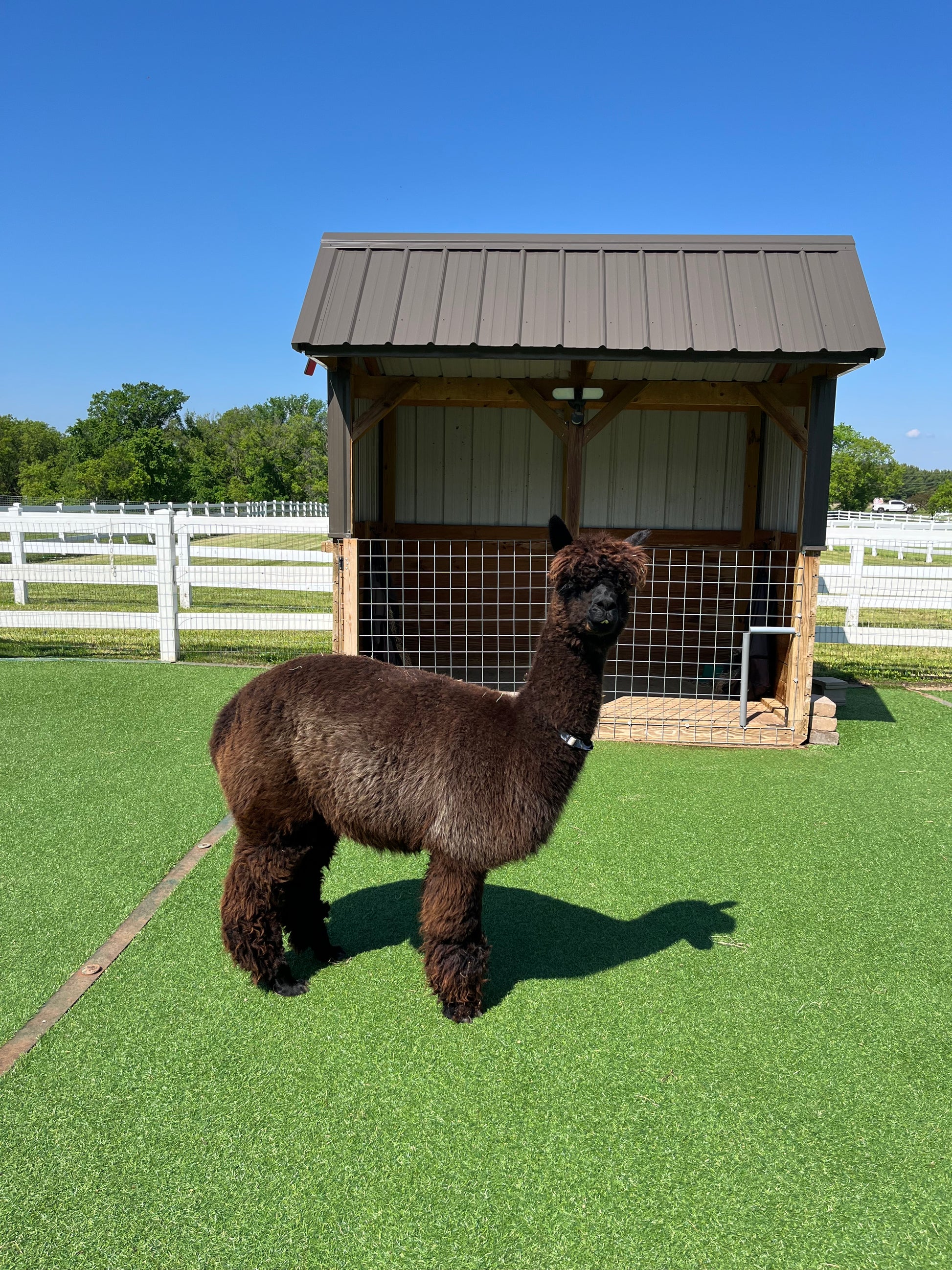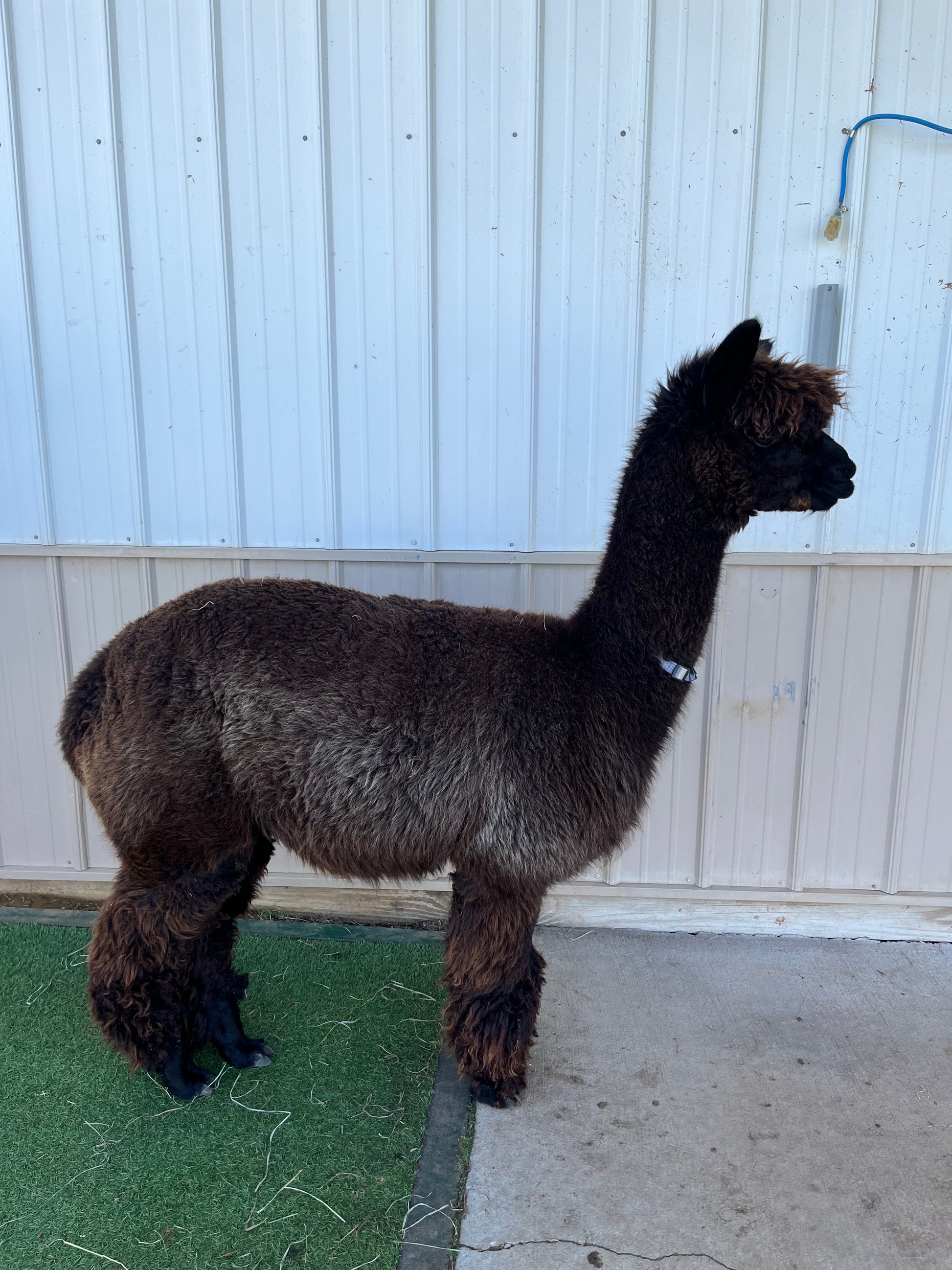 Freedom is a beautiful true black girl so named because she was born on the 4th of July. Freedom has a gentle disposition, beautiful conformation and awesome fleece. She has very nice staple length and crimp. Freedom is a 4 x Champion. She is another mellow alpaca. She has two cria.