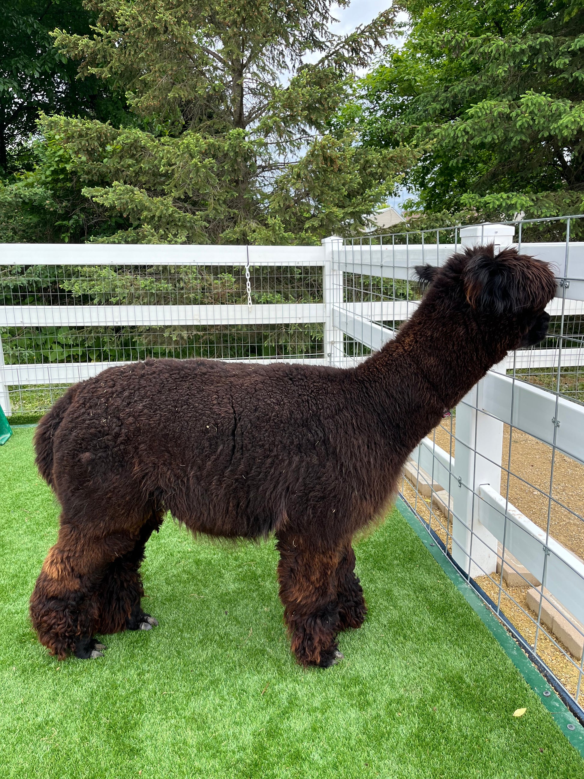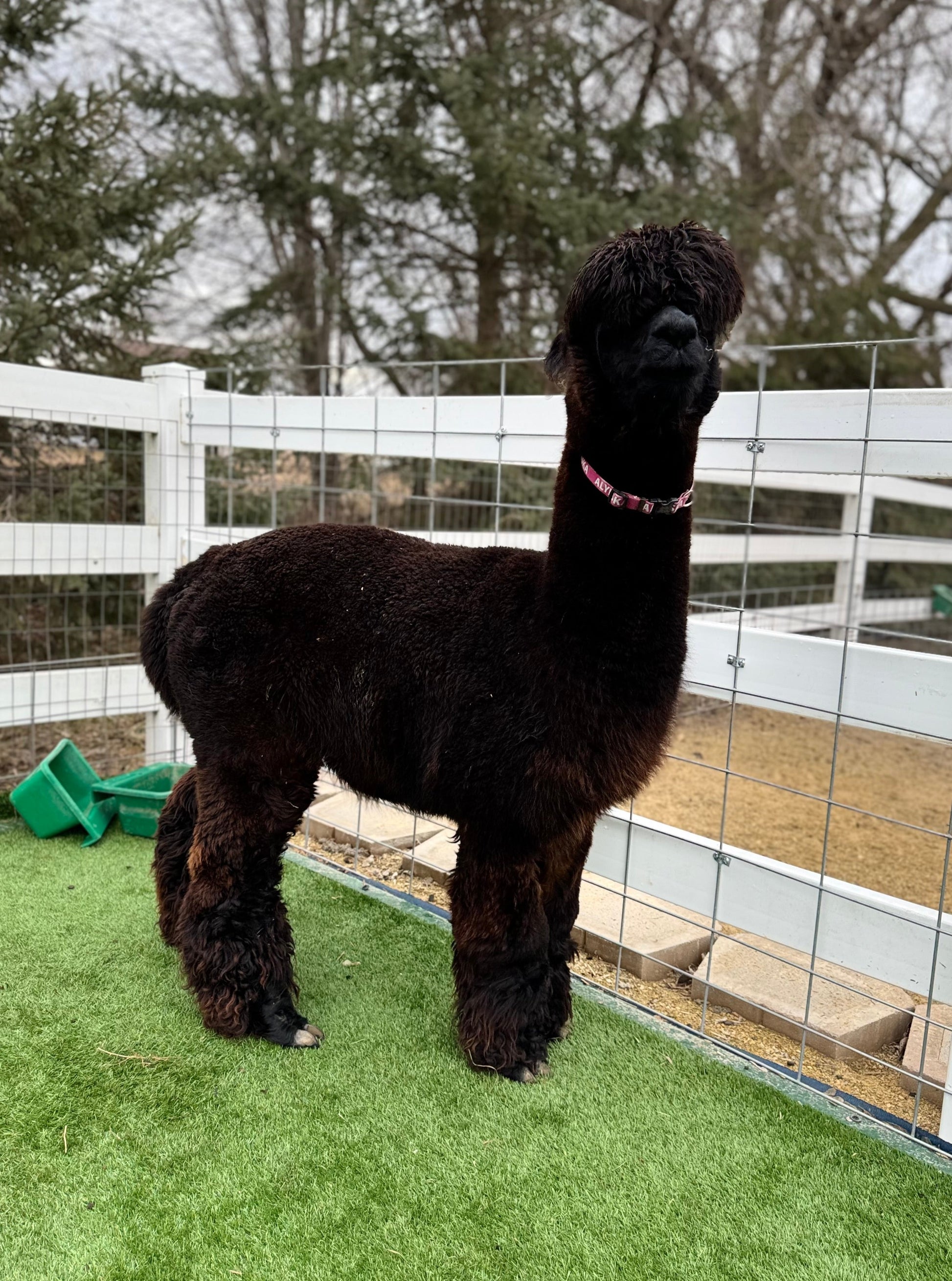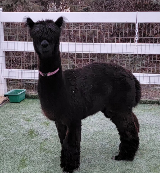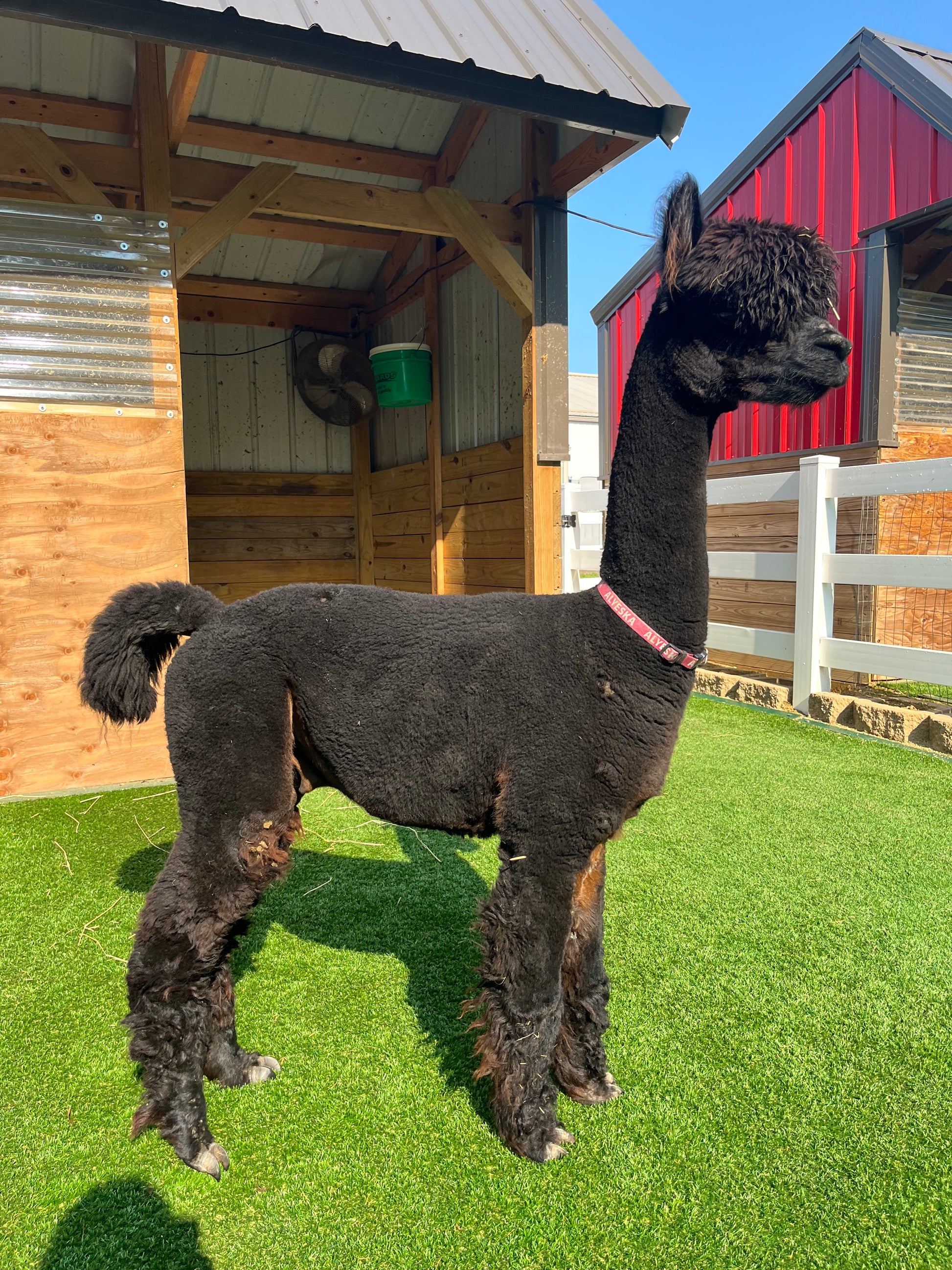 We bought this male when he was a juvie. He has a 3 Reserve Championships, but comes from power house genetics. Snowmass Mr.Sizlin Rose and Red Granites Allison are his sire and dam, respectively. Both have produced great genetics. He only has one offspring, EEF 3rd Times a Charm. We simply have too many black males at EEF to effectively use him. $9,000.